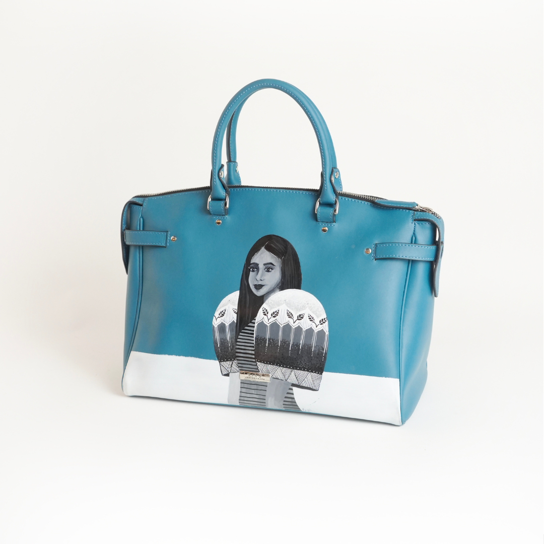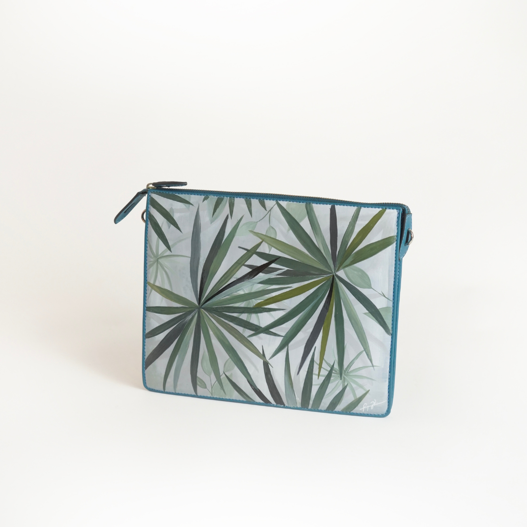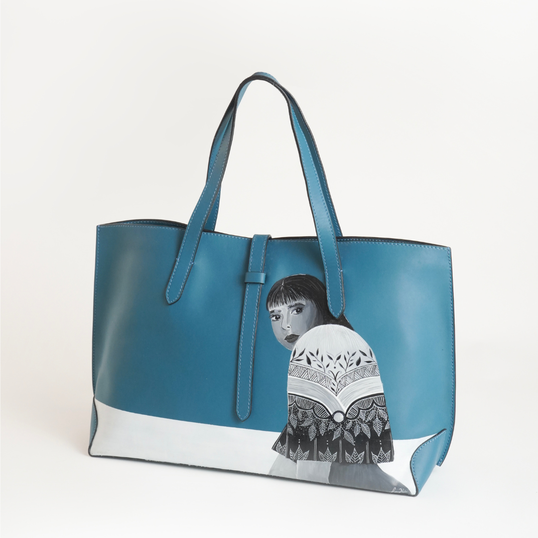 FINO x DETAILS INK is a one-off collection of bags that features the artist’s hand paintings, dated and signed, and accompanied by a certificate of authentication. The 30-piece series is an ode to heritage with Pangilinan expressing the themes of local flora and fauna alongside the Filipina’s evolved identity. The artist’s portraits of women in traditional garb bridge generations, with one in particular revealing the gaze of a strong, modern Filipina.